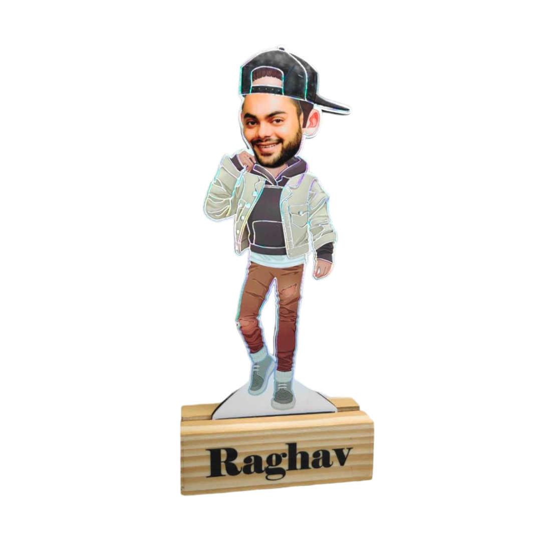 Add a fun and playful touch to your home decor with this cool Caricature - Dude Boy with Features Wood Photo Collage. Measuring 4"x8" in size, this photo collage comes with a natural wooden stand and is made from 3.5mm MDF. The clear sublimation PVC adds a special golden and sparkle effect, making it perfect for showcasing your favorite memories in a unique way. The dude boy caricature on the top of the collage adds a funky and quirky touch to the overall design