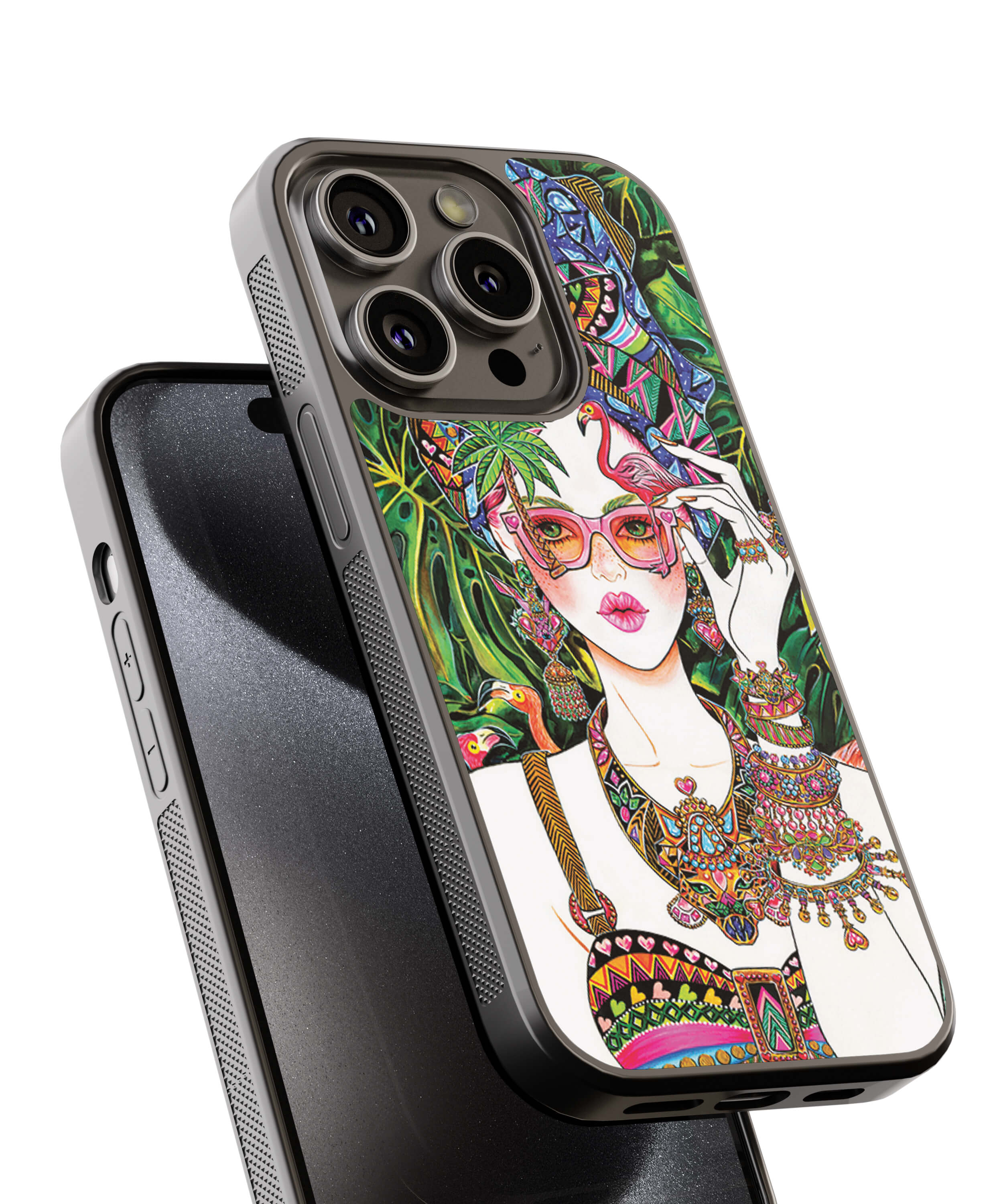 HYBRID METAL & TPU : This Beautifully Dressed Girl In Water Surrounded By Flamingo And Leaves Showing Beauty Of Nature printed case for your phone is made with hybrid Metal and TPU material. It protects your phone with TPU material and print on a metal sheet looks glossy and stunning.