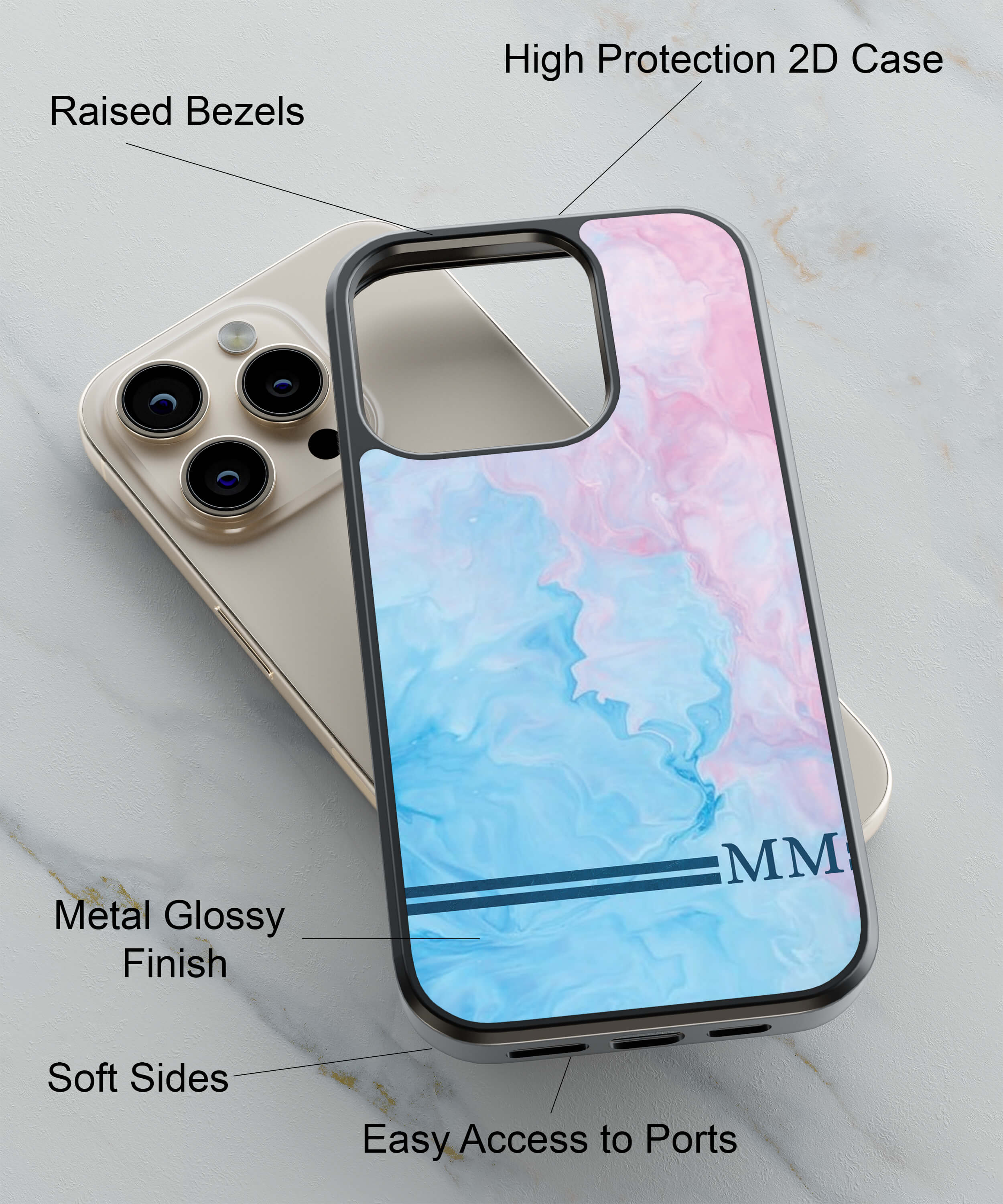 HYBRID METAL & TPU : This Classic Marble with Initials printed case for your phone is made with hybrid Metal and TPU material. It protects your phone with TPU material and print on a metal sheet looks glossy and stunning.
