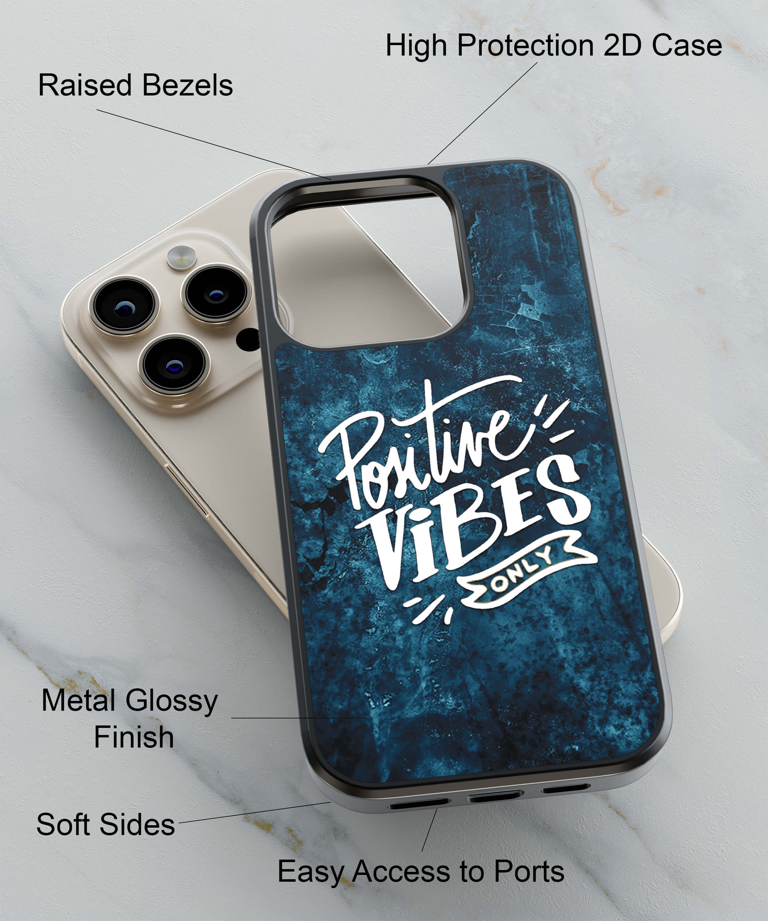 HYBRID METAL & TPU : This Positive Vibes Only printed case for your phone is made with hybrid Metal and TPU material. It protects your phone with TPU material and print on a metal sheet looks glossy and stunning.