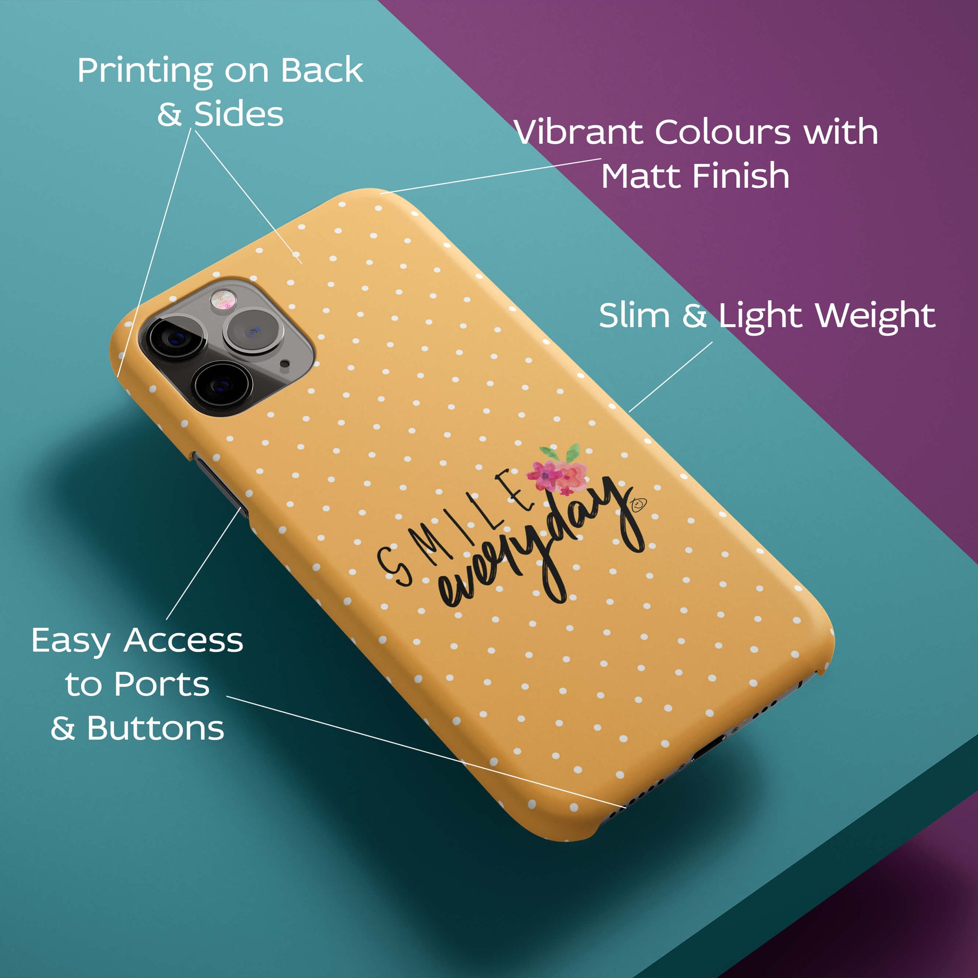 LIGHT WEIGHT : This Smile Everyday printed case for your phone is made with with very light weight material. It protects your phone without adding extra weight..