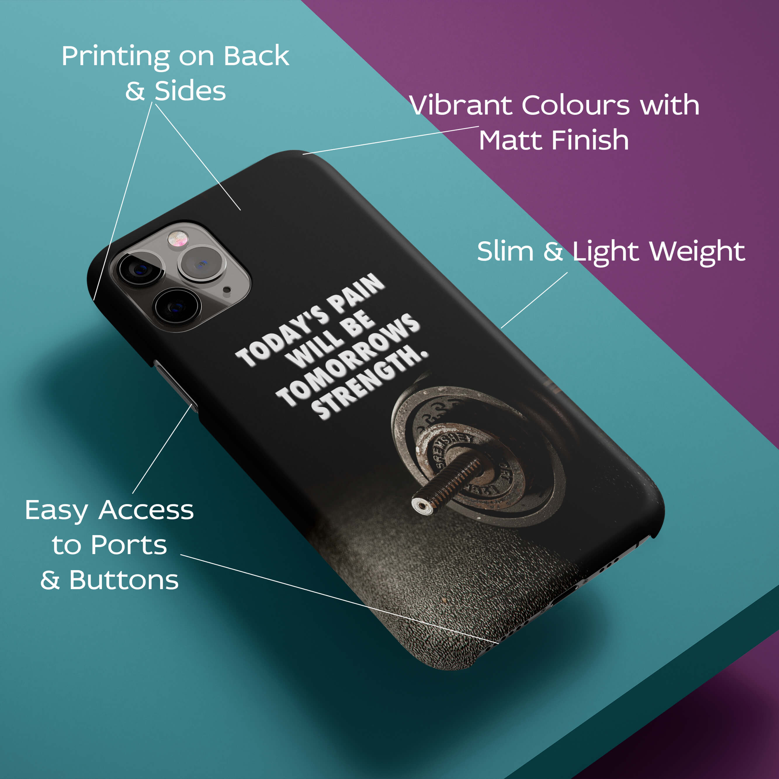LIGHT WEIGHT : This Today's Pain Tomorrow's Strength printed case for your phone is made with with very light weight material. It protects your phone without adding extra weight..