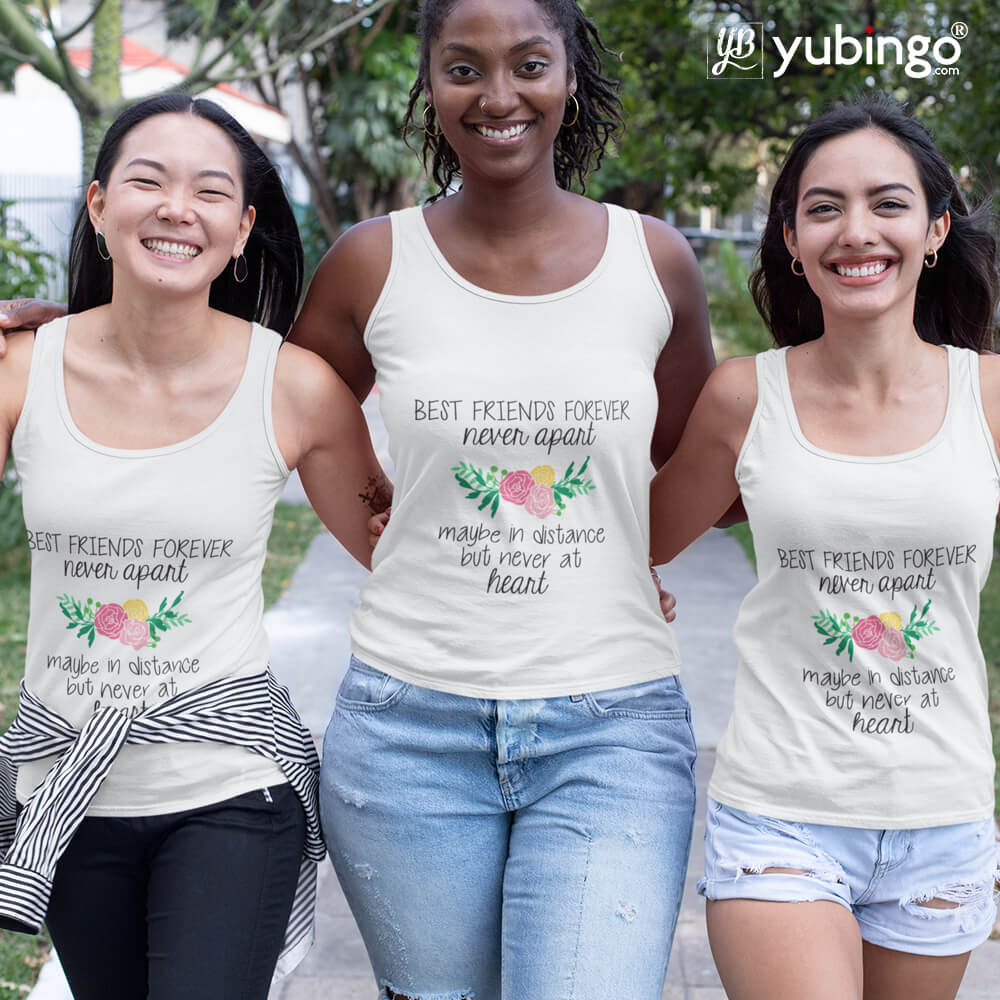 CUSTOM PRINTED FOR YOU : This "BFF Never Apart" designer Tank Top is custom printed for you or your loved one. The maximum print size is 8 x 11 Inch.