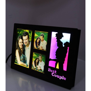 Celebrate your love with this Best Couple LED Photo Frame, featuring a stylish design and warm LED lights. Made from high-quality MDF wood material, this 6x8 photo frame comes with an in-built power supply, eliminating the need for an adaptor. It's the perfect way to display your favorite memories with your loved one.