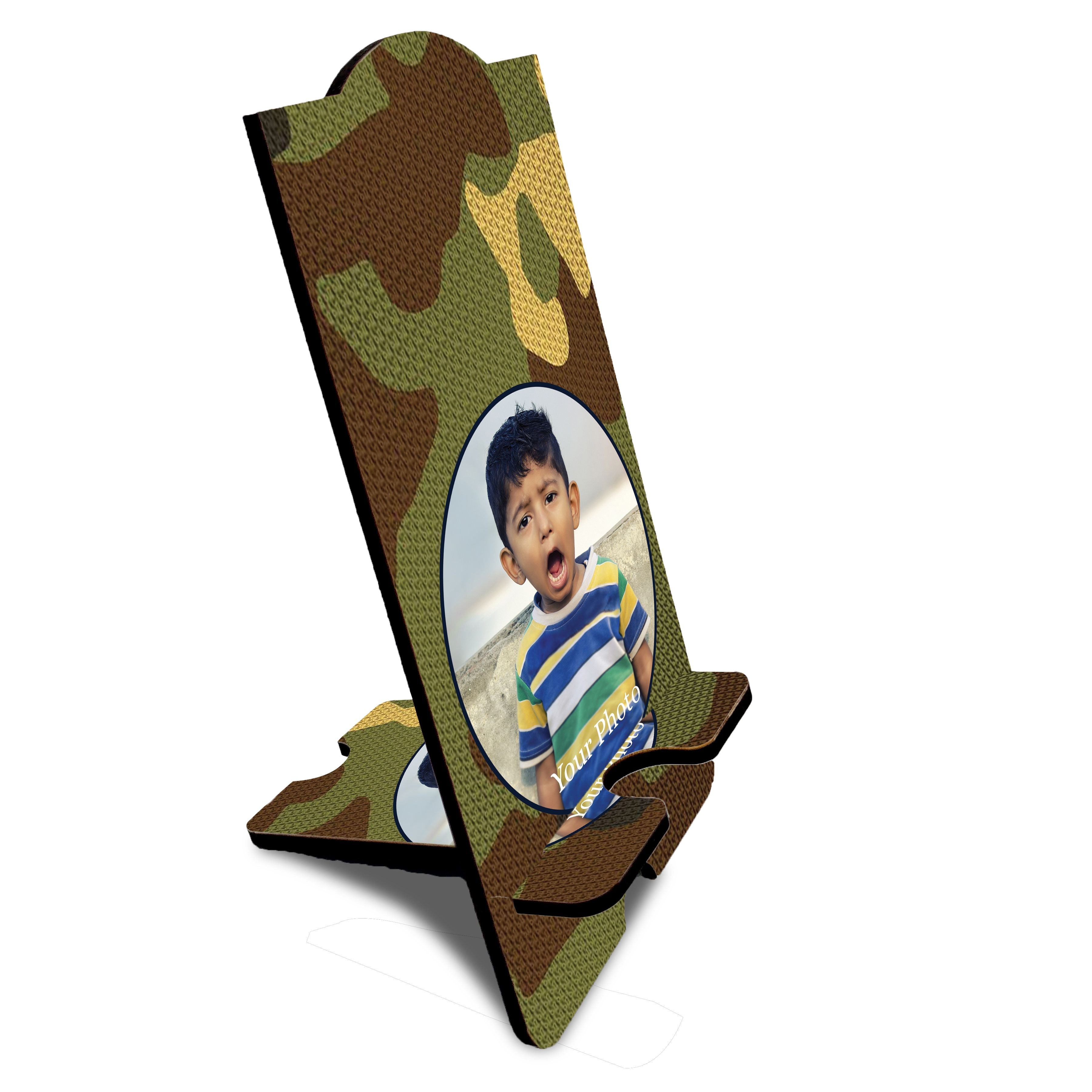 PERFECT SIZE : This "Camouflage Photo" customised designer Mobile Stand is 19Cm in Height and 10 Cm in width.
