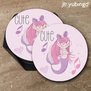 • This Cute Mermaid Coaster Set is printed specially for you. Be a great host and offer your guests this designer printed coaster under their glasses. Ease your burden and add a personalised touch to your next party with custom printed coasters. Amazing looks with cool printed designs, these coasters perfectly transition from cocktail hours to receptions. It's waterproof and backed with cork, will protect your furniture from scratch and stains. The patterns are printed by heat press machine, printed in full colour durable finish. Can be wiped clean. It can also be used as a work of art for your home, office or as a gift. Stock up today and never see a water ring again on your furniture! HD quality printing on Wooden MDF makes your coasters look vibrant and cool. This Cute Mermaid coaster set is having 9.5Cm size and that's perfect for glass, bottles or mugs of various sizes. This stylish coaster set is from our Girl Zone collection and will be made for you within 24 hours after you place the order.