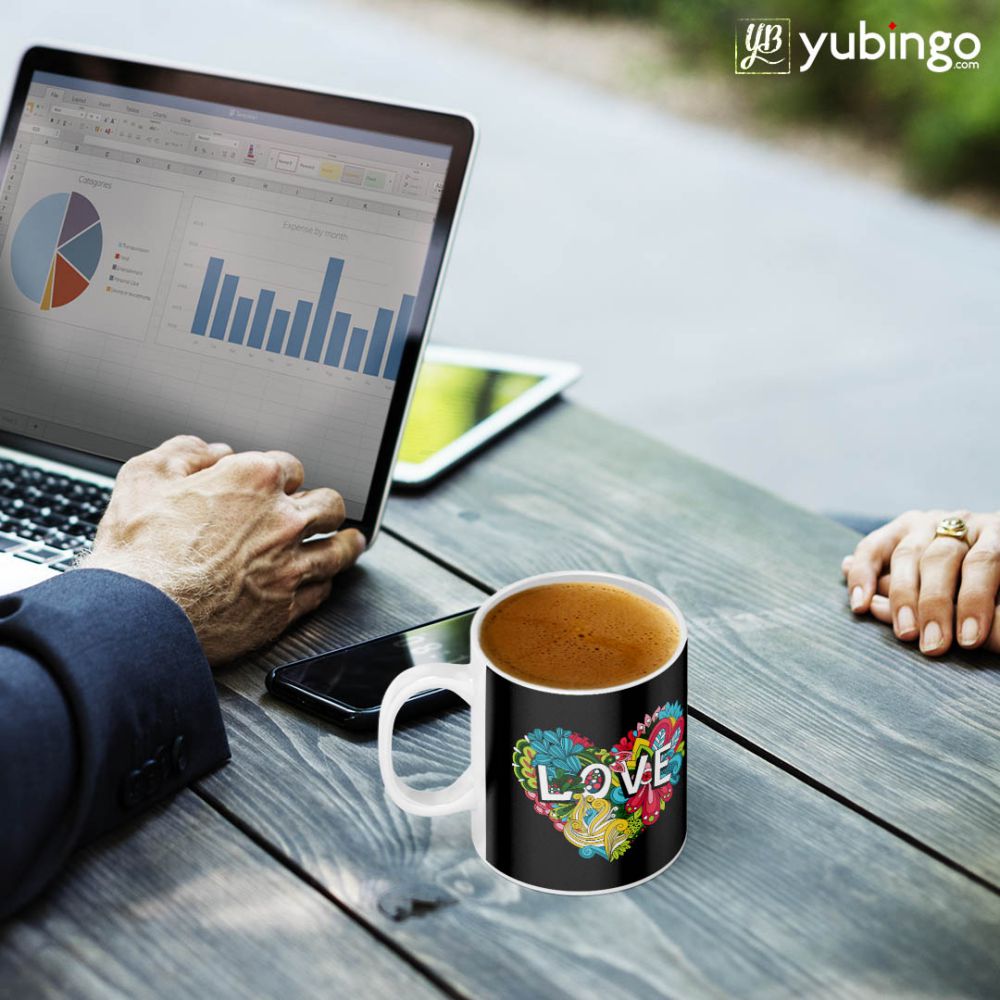 PERFECT SIZE : This "Flowery Love" designer coffee mug holds 325 Ml or 11Oz of your favorite drink.