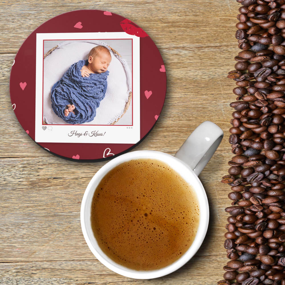 • This Heart Smiles Coaster Set is printed specially for you. Be a great host and offer your guests this designer printed coaster under their glasses. Ease your burden and add a personalised touch to your next party with custom printed coasters. Amazing looks with cool printed designs, these coasters perfectly transition from cocktail hours to receptions. It's waterproof and backed with cork, will protect your furniture from scratch and stains. The patterns are printed by heat press machine, printed in full colour durable finish. Can be wiped clean. It can also be used as a work of art for your home, office or as a gift. Stock up today and never see a water ring again on your furniture! HD quality printing on Wooden MDF makes your coasters look vibrant and cool. This Heart Smiles coaster set is having 9.5Cm size and that's perfect for glass, bottles or mugs of various sizes. This stylish coaster set is from our Customised with Photo collection and will be made for you within 24 hours after you place the order.