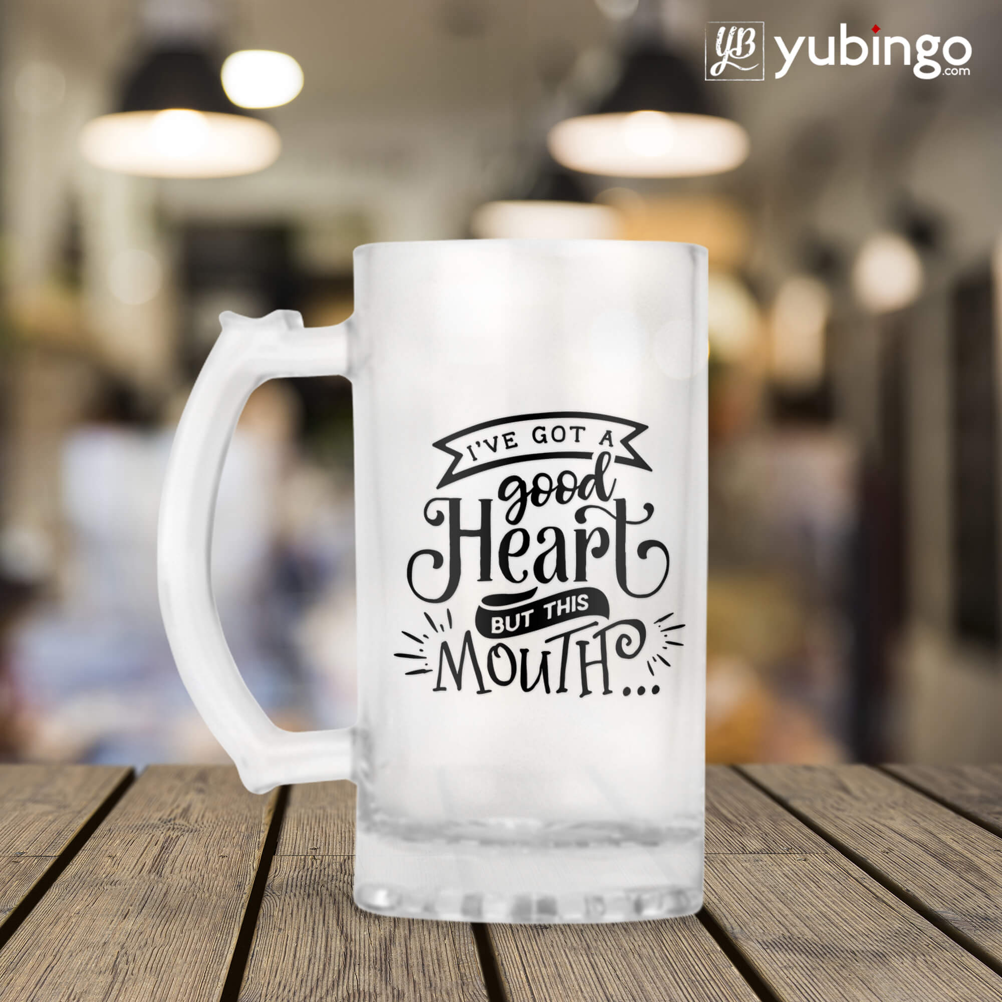 CUSTOM PRINTED FOR YOU : This "I'Hv Got A Good Heart But This" beer mug is custom printed. Use it yourself or gift it to your loved ones.