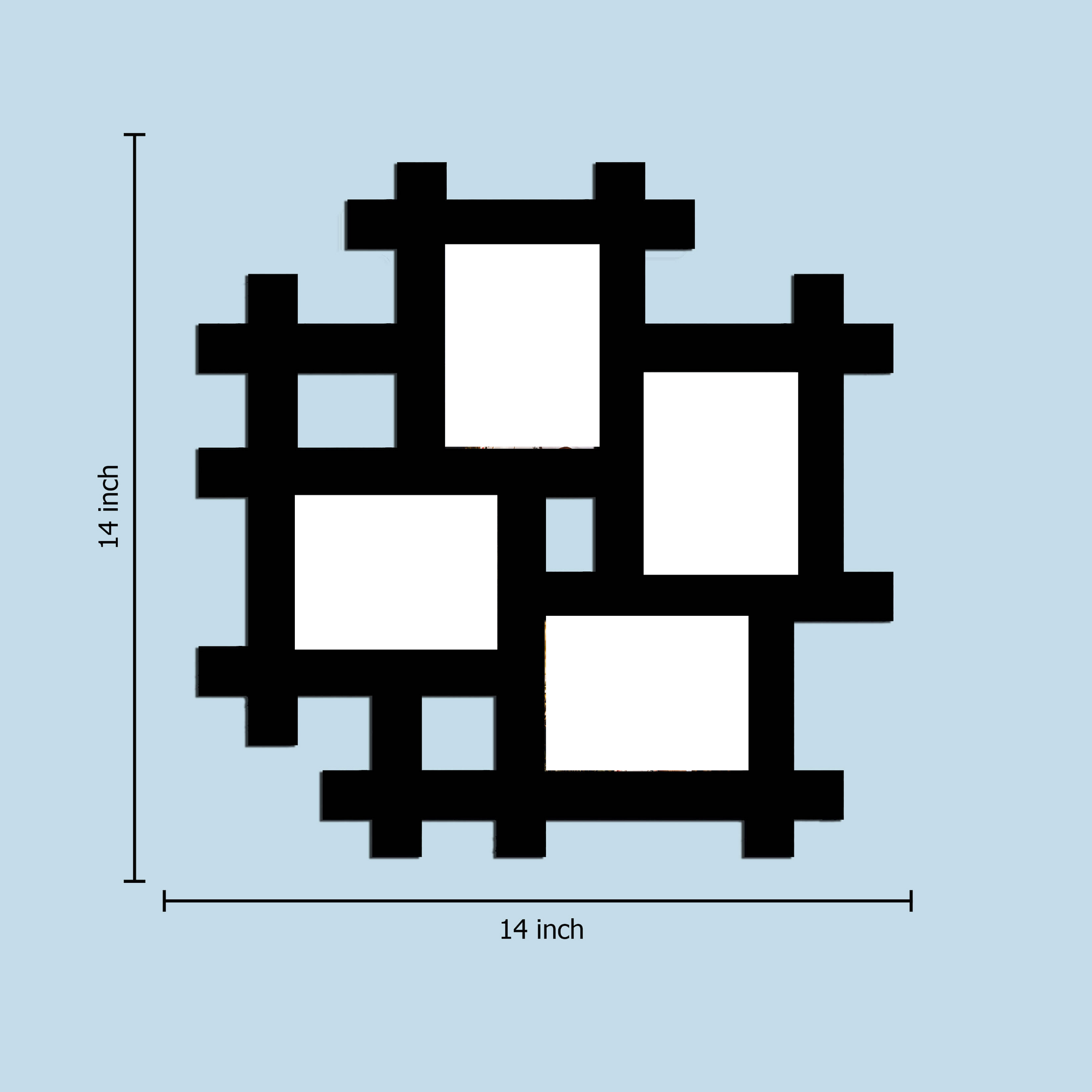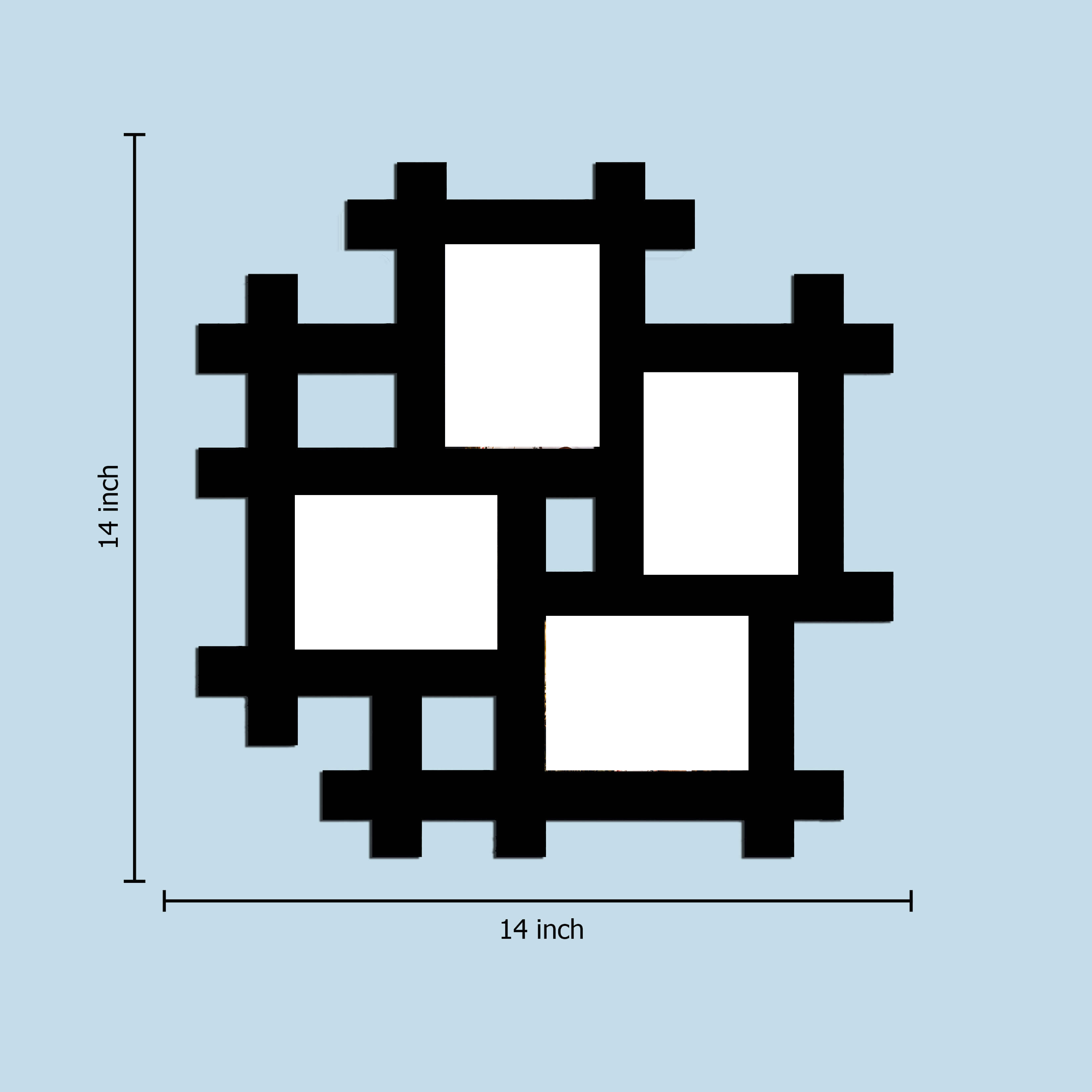 Laser Cut Photo Frame with Four Photos - MDF Wood Wall Hanging, 14x14 Inches