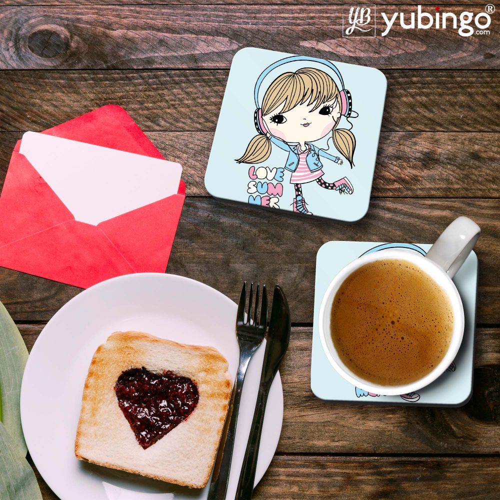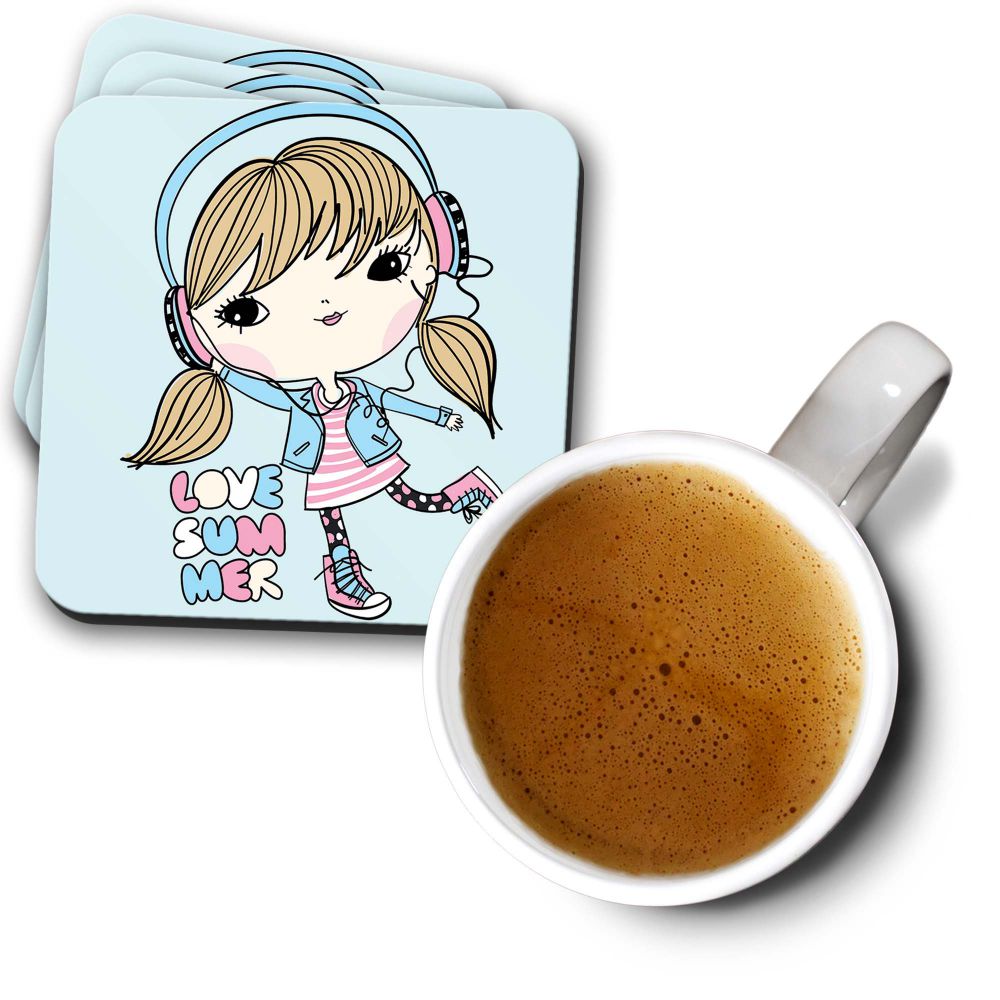• This Love Summer Coaster Set is printed specially for you. Be a great host and offer your guests this designer printed coaster under their glasses. Ease your burden and add a personalised touch to your next party with custom printed coasters. Amazing looks with cool printed designs, these coasters perfectly transition from cocktail hours to receptions. It's waterproof and backed with cork, will protect your furniture from scratch and stains. The patterns are printed by heat press machine, printed in full colour durable finish. Can be wiped clean. It can also be used as a work of art for your home, office or as a gift. Stock up today and never see a water ring again on your furniture! HD quality printing on Wooden MDF makes your coasters look vibrant and cool. This Love Summer coaster set is having 9.5x 9.5 Cm size and that's perfect for glass, bottles or mugs of various sizes. This stylish coaster set is from our Girl Zone collection and will be made for you within 24 hours after you place the order.