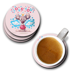 • This Love You Coaster Set is printed specially for you. Be a great host and offer your guests this designer printed coaster under their glasses. Ease your burden and add a personalised touch to your next party with custom printed coasters. Amazing looks with cool printed designs, these coasters perfectly transition from cocktail hours to receptions. It's waterproof and backed with cork, will protect your furniture from scratch and stains. The patterns are printed by heat press machine, printed in full colour durable finish. Can be wiped clean. It can also be used as a work of art for your home, office or as a gift. Stock up today and never see a water ring again on your furniture! HD quality printing on Wooden MDF makes your coasters look vibrant and cool. This Love You coaster set is having 9.5Cm size and that's perfect for glass, bottles or mugs of various sizes. This stylish coaster set is from our Girl Zone collection and will be made for you within 24 hours after you place the order.