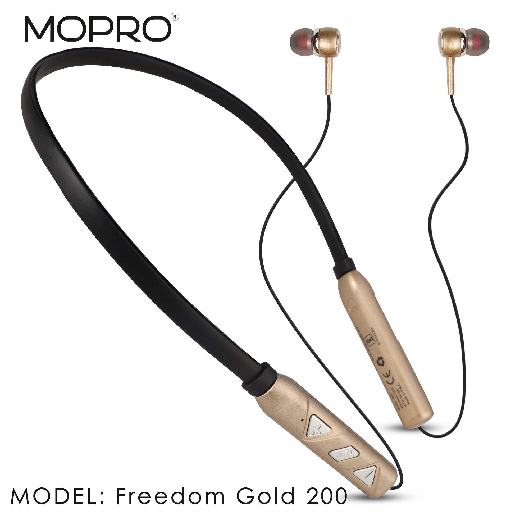 The MoPro Bluetooth Earphone Wireless Freedom 200 in Golden color is a high-quality wireless earphone designed for those who value freedom and mobility. This earphone utilizes Bluetooth version 5.0 technology, providing a stable and strong wireless connection to your devices.