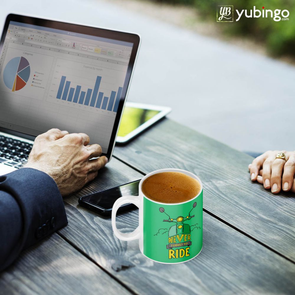 PERFECT SIZE : This "Never Forget to Ride" designer coffee mug holds 325 Ml or 11Oz of your favorite drink.