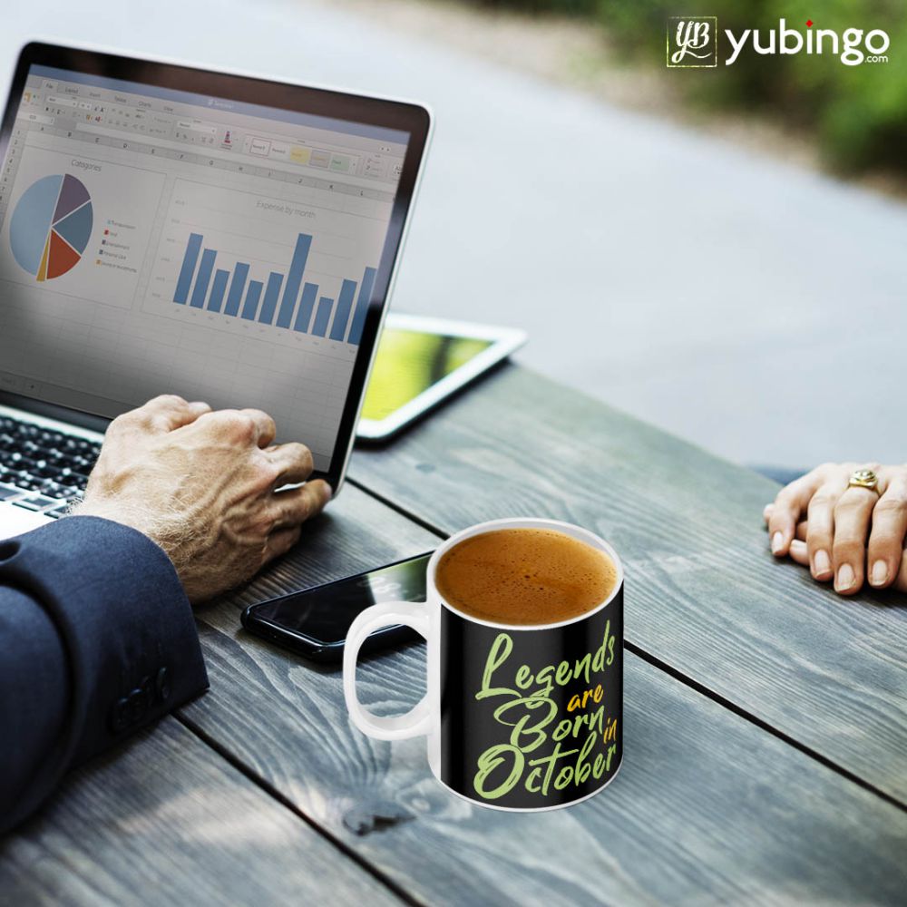 PERFECT SIZE : This "October Legends" designer coffee mug holds 325 Ml or 11Oz of your favorite drink.