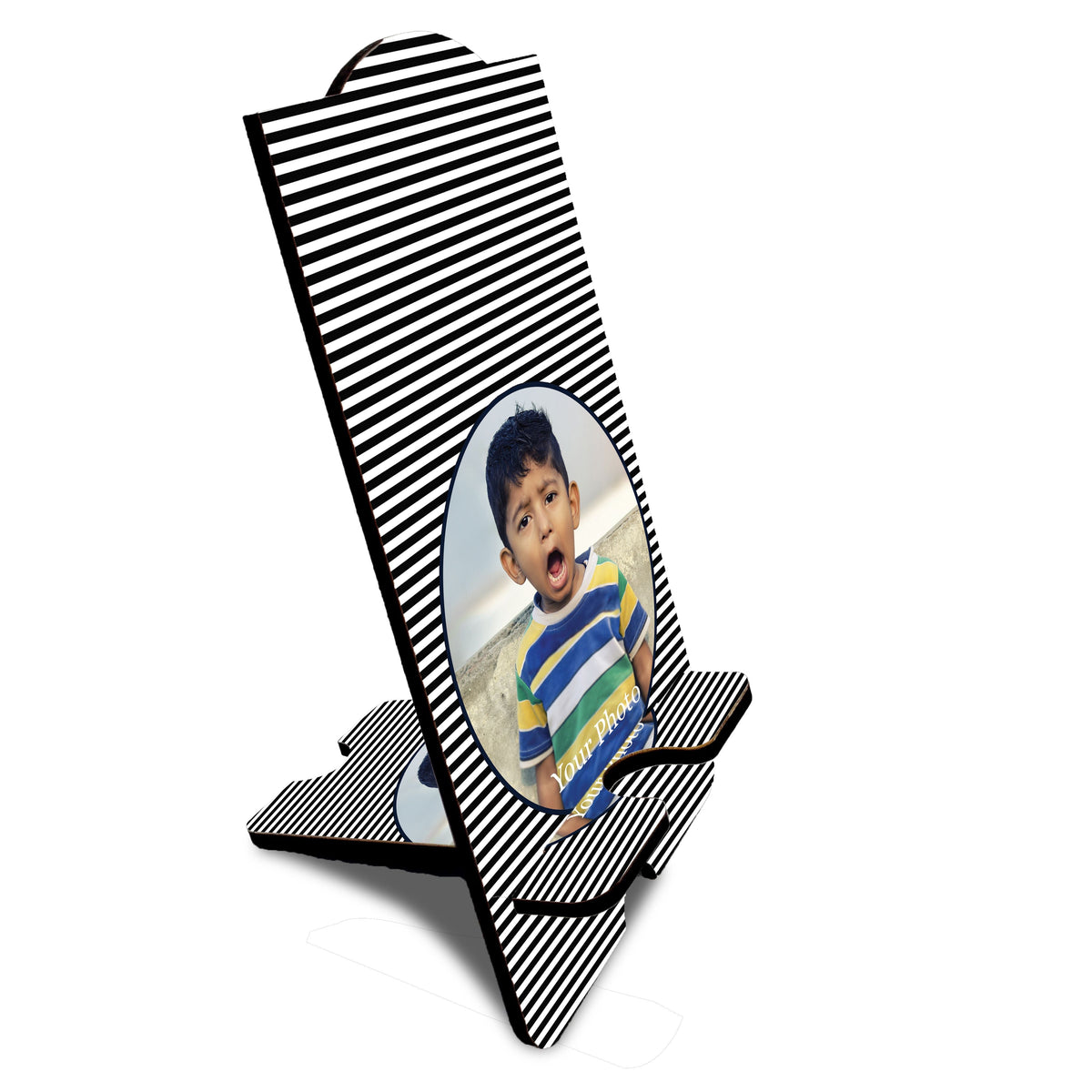 PERFECT SIZE : This "Stripes and Photo" customised designer Mobile Stand is 19Cm in Height and 10 Cm in width.