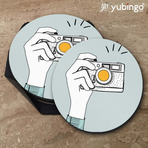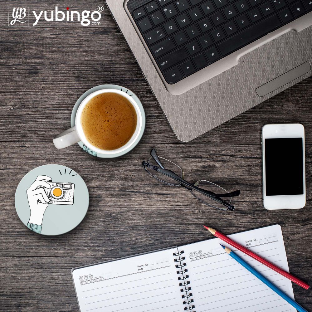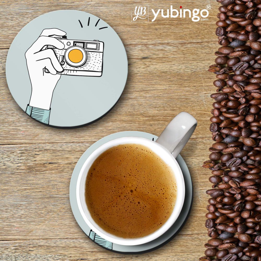 • This The Photographer Coaster Set is printed specially for you. Be a great host and offer your guests this designer printed coaster under their glasses. Ease your burden and add a personalised touch to your next party with custom printed coasters. Amazing looks with cool printed designs, these coasters perfectly transition from cocktail hours to receptions. It's waterproof and backed with cork, will protect your furniture from scratch and stains. The patterns are printed by heat press machine, printed in full colour durable finish. Can be wiped clean. It can also be used as a work of art for your home, office or as a gift. Stock up today and never see a water ring again on your furniture! HD quality printing on Wooden MDF makes your coasters look vibrant and cool. This The Photographer coaster set is having 9.5Cm size and that's perfect for glass, bottles or mugs of various sizes. This stylish coaster set is from our Patterns & Graphics collection and will be made for you within 24 hours after you place the order.