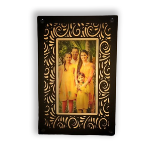 Keep your family memories alive with our Warm White LED Family Frame. This 6x8" frame features sliding photos and warm white light that highlights your pictures beautifully. The frame stands on metal studs for easy assembly and comes with an in-built power adapter, eliminating the need for an extra adapter. The package includes sublimation PVC for easy printing.