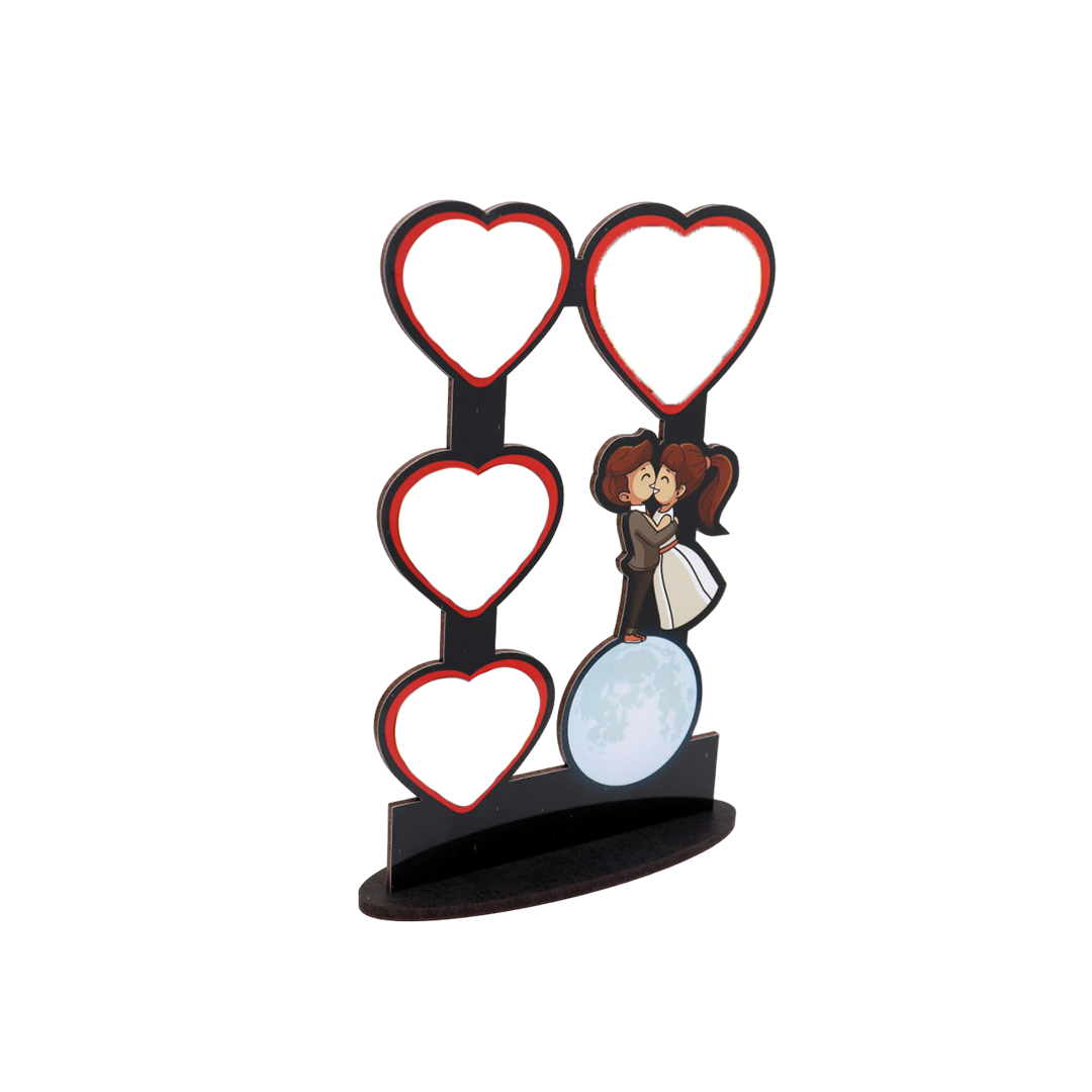 Display your love with this beautiful Wood Collage featuring two hearts intertwined. Made of high-quality 3mm thick wood, this collage is a perfect way to showcase your favorite couple photos. Measuring 6"x 8", it is a versatile size that can be hung on the wall or placed on a shelf. This collage makes a great gift for a special couple or a lovely addition to your own home decor.