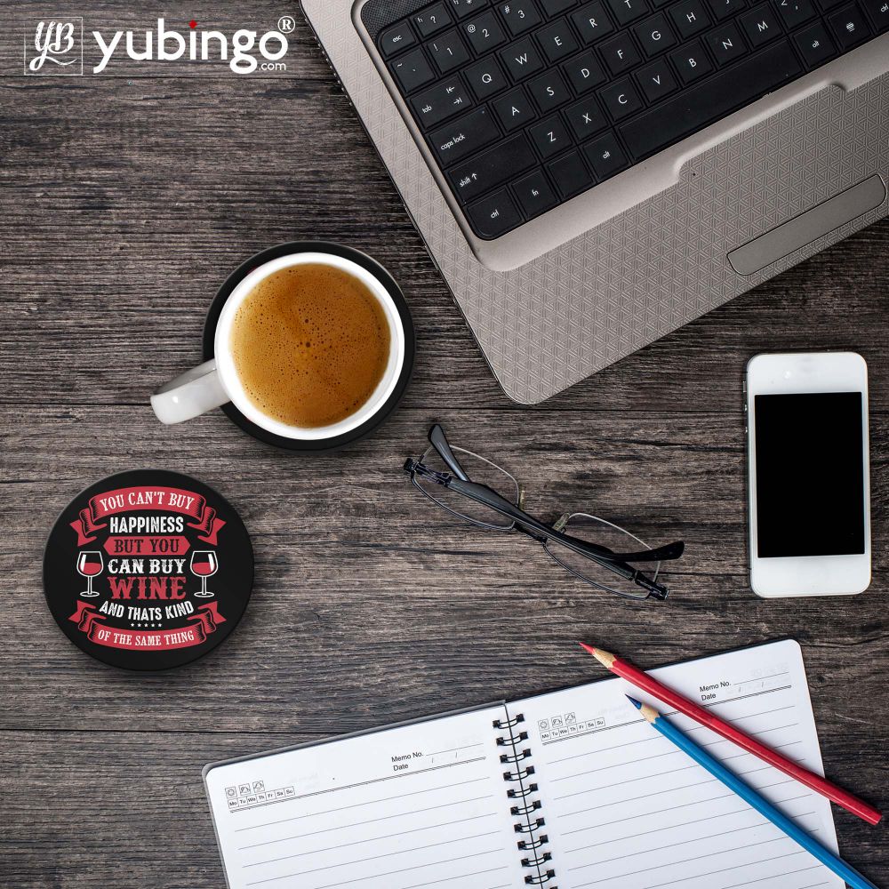 • This You Can't Buy Happiness Coaster Set is printed specially for you. Be a great host and offer your guests this designer printed coaster under their glasses. Ease your burden and add a personalised touch to your next party with custom printed coasters. Amazing looks with cool printed designs, these coasters perfectly transition from cocktail hours to receptions. It's waterproof and backed with cork, will protect your furniture from scratch and stains. The patterns are printed by heat press machine, printed in full colour durable finish. Can be wiped clean. It can also be used as a work of art for your home, office or as a gift. Stock up today and never see a water ring again on your furniture! HD quality printing on Wooden MDF makes your coasters look vibrant and cool. This You Can't Buy Happiness coaster set is having 9.5Cm size and that's perfect for glass, bottles or mugs of various sizes. This stylish coaster set is from our Quotes/Messages collection and will be made for you within 24 hours after you place the order.