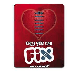 CUSTOM PRINTED FOR YOU : This "Fix My Heart" Mousepad is printed specially for you. Accent your desk with custom mousepad and make yourself the envy of colleagues and friends.