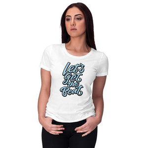 CUSTOM PRINTED FOR YOU : This "Let's Get The Beat" designer T-Shirt for Women is custom printed for you or your loved one. The maximum print size is 8 x 11 Inch.