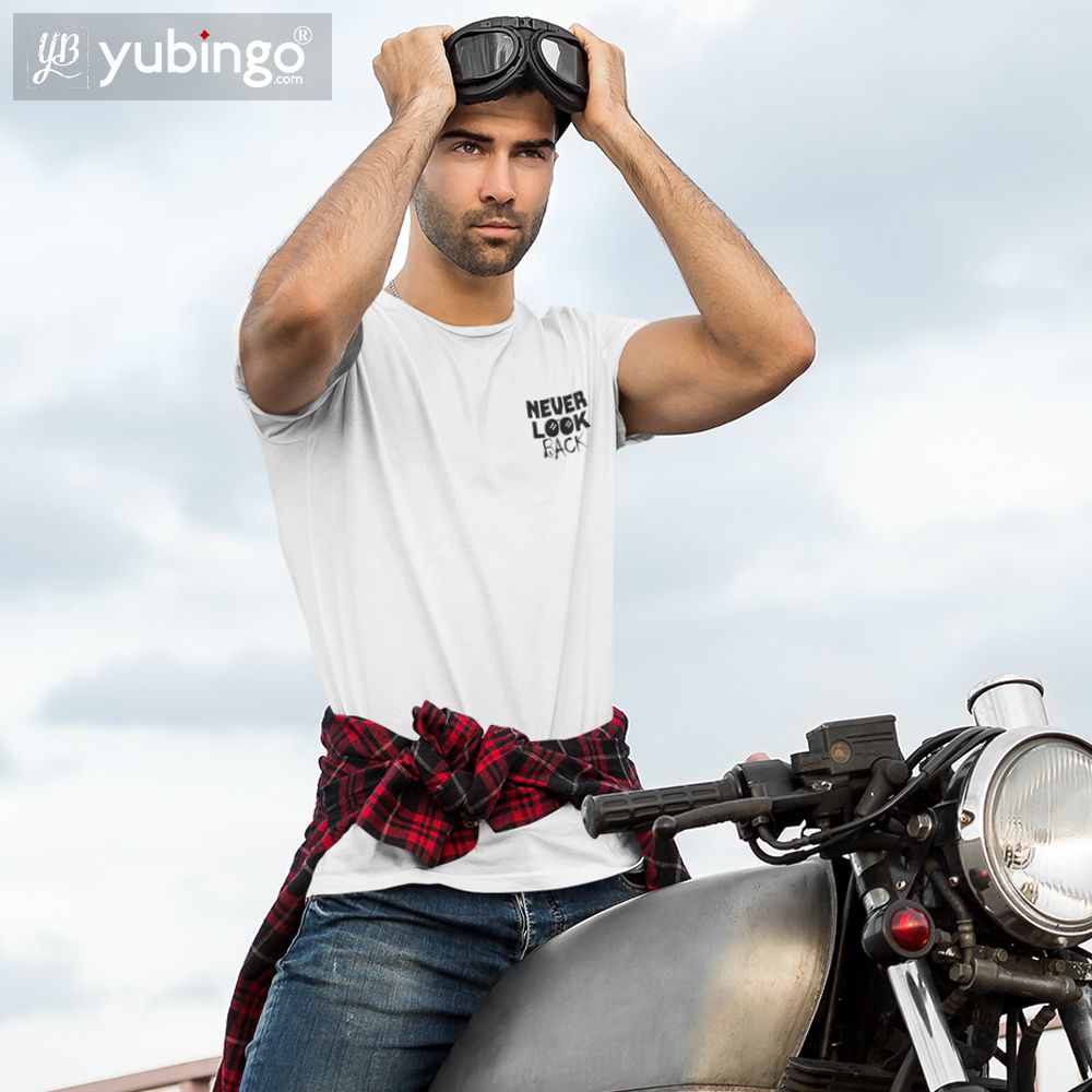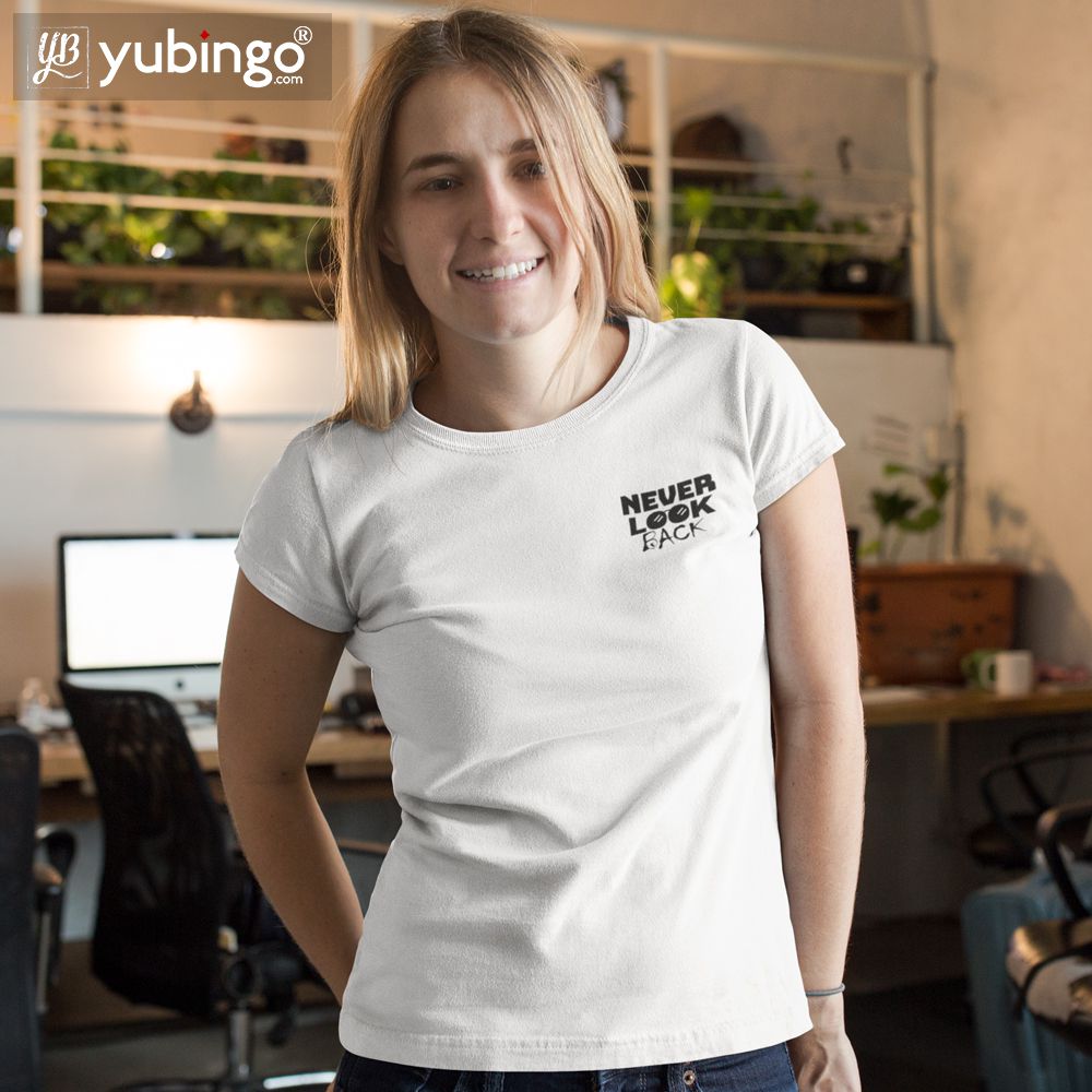 CUSTOM PRINTED FOR YOU : This "Never Look Back Ever" designer T-Shirt is custom printed for you or your loved one. The maximum print size is 8 x 11 Inch.