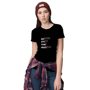 CUSTOM PRINTED FOR YOU : This "Never Stop Hustle" designer T-Shirt for Women is custom printed for you or your loved one. The maximum print size is 8 x 11 Inch.