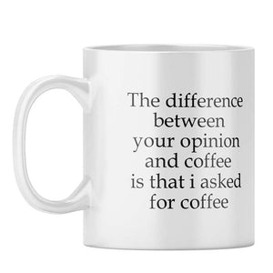 PERFECT SIZE : This "Opinion And Coffee" designer coffee mug holds 325 Ml or 11Oz of your favorite drink.