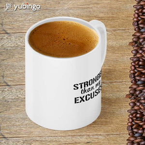 PERFECT SIZE : This "Stronger Than Excuses" designer coffee mug holds 325 Ml or 11Oz of your favorite drink.