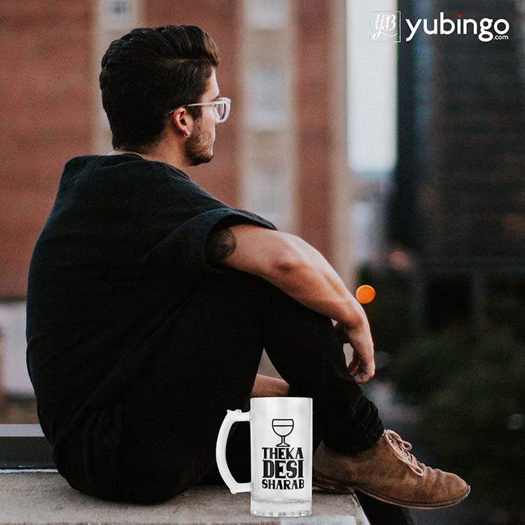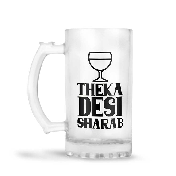 CUSTOM PRINTED FOR YOU : This "Theka Desi Sharab" beer mug is custom printed. Use it yourself or gift it to your loved ones.