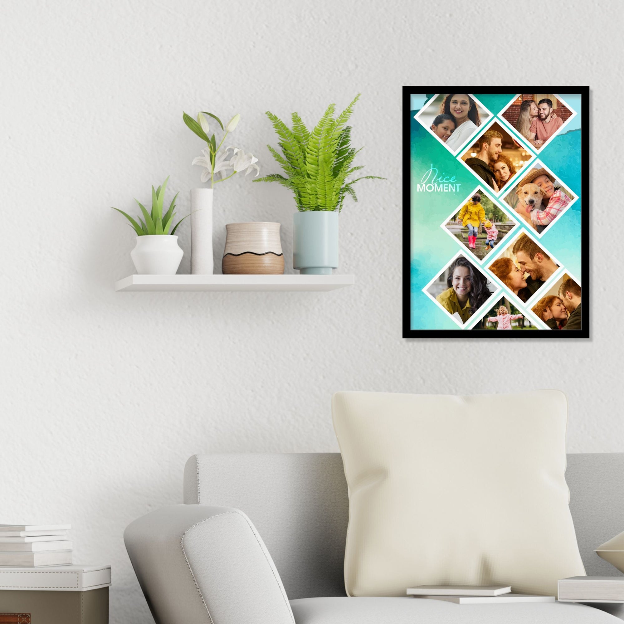 CUSTOM PRINTED FOR YOU : This "Nice Moment Photo Collage" Customised Frame is printed specially for you.